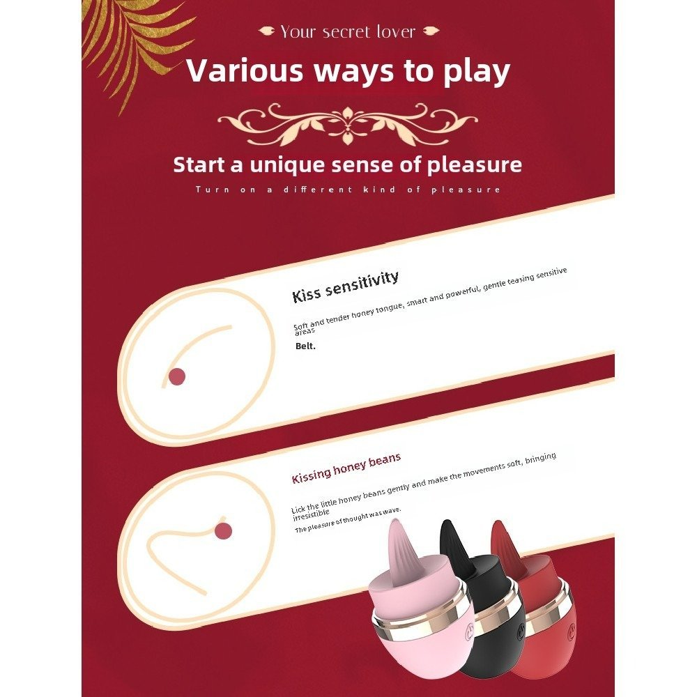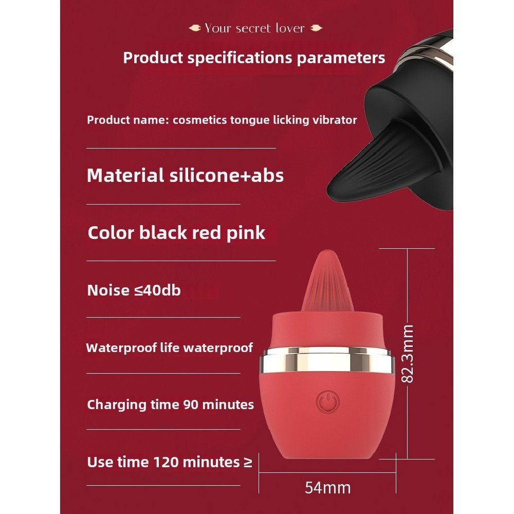 Product name: cosmetics tongue licking vibrator .Material: silicone+abs .Color: black red pink .Noises:40db .Waterproof life :waterproof .Charging time :90 minutes .Use time: 120 minutes |